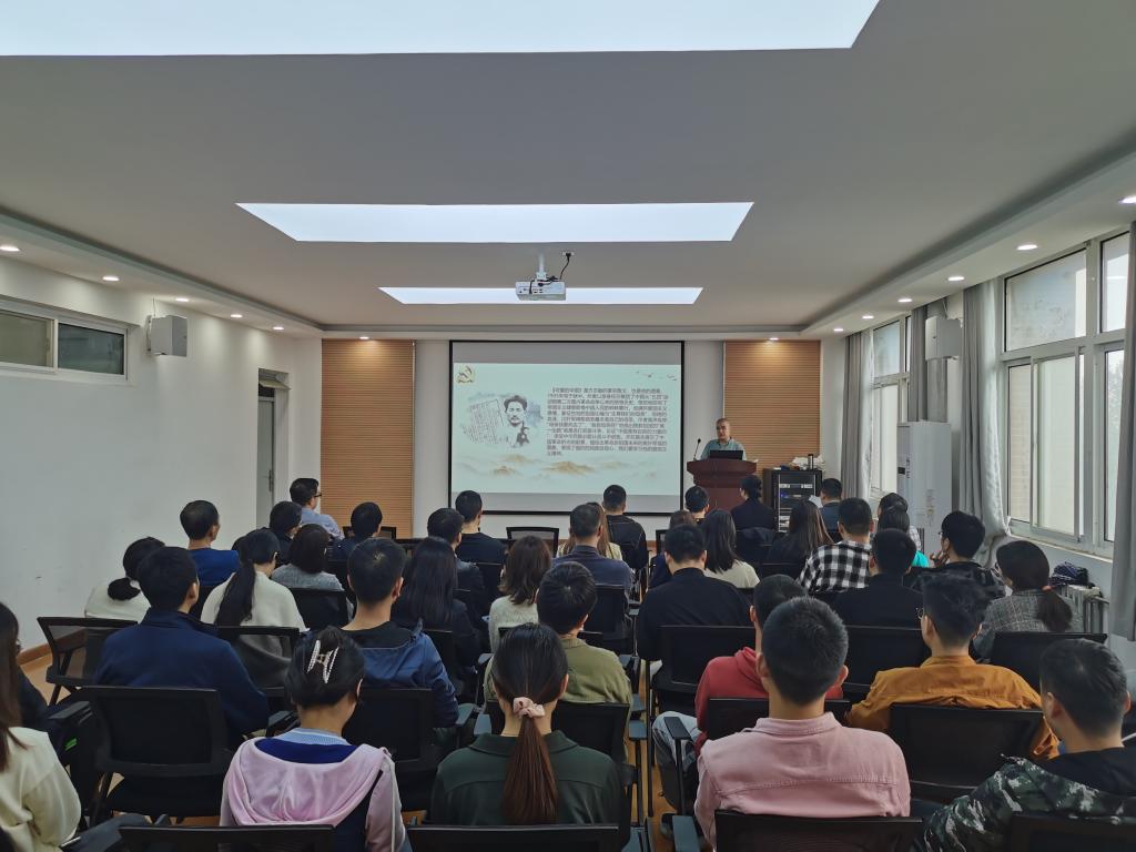 为深入学习贯彻习近平总书记“七一”重要讲话精神,扎实推进党史学习教育,进一步激发全院师生党员学习“四史”的积极性,2021年9月28日,Beat365中国唯一官方网站特邀请学校离退办党委书记张平老师为学院师生党员做了题为《歌声中的党史记忆》主题报告。学院全体教师党员和部分学生党员参加了报告会,报告会由学院党委书记王鸣媛主持。