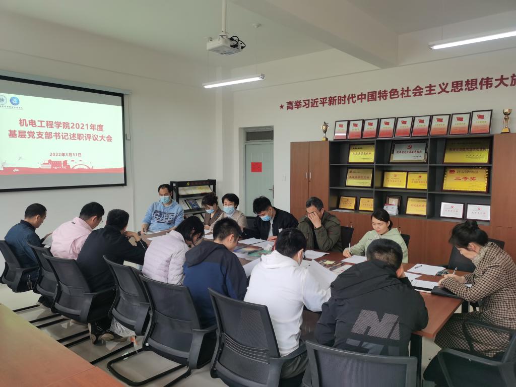 2022年3月31日下午,Beat365中国唯一官方网站在7-315党团活动室召开2021年度基层党支部书记述职评议大会。学院党委委员、全体党支部书记参加了会议。