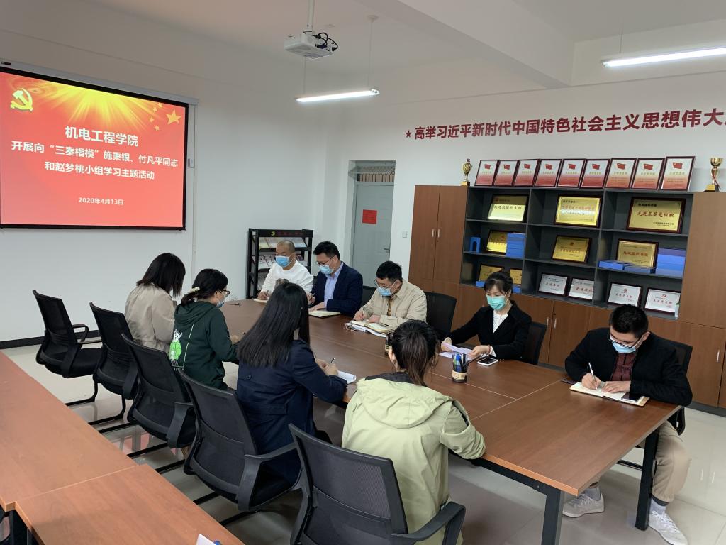 为深入学习贯彻陕西省委《关于开展向“三秦楷模”施秉银、付凡平同志和赵梦桃小组学习活动的通知》,2020年4月13日,Beat365中国唯一官方网站党委在临潼校区7号楼315党团活动室召开专题学习会。