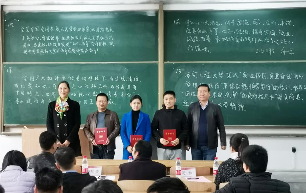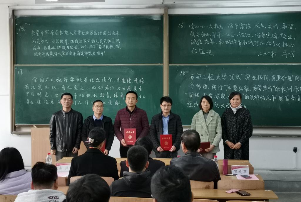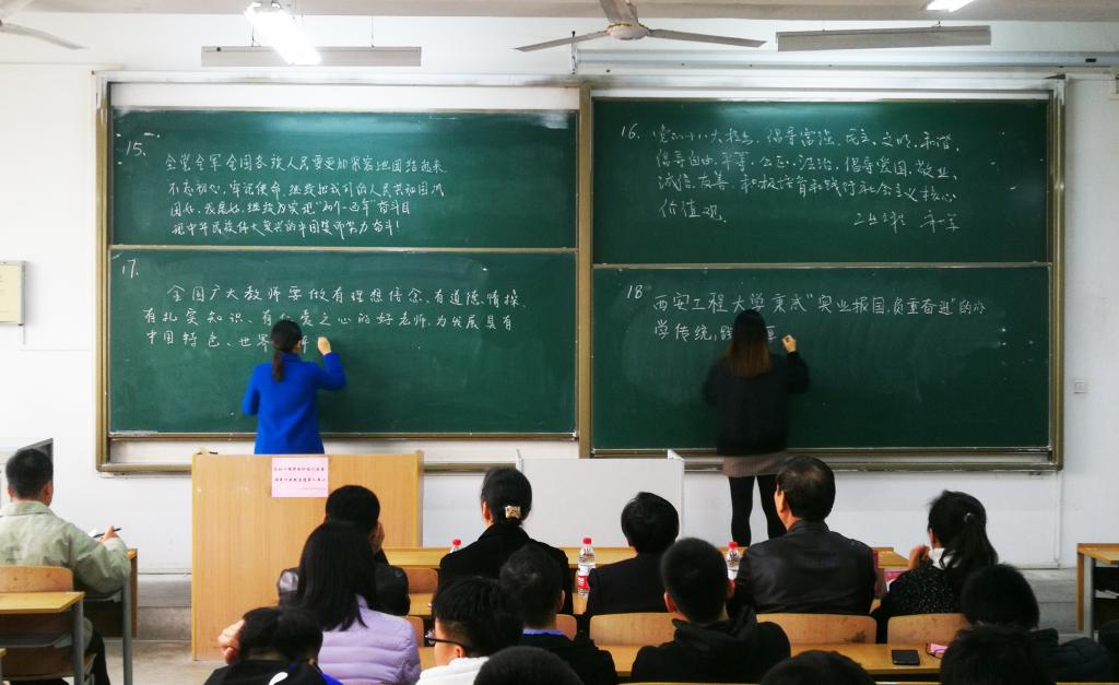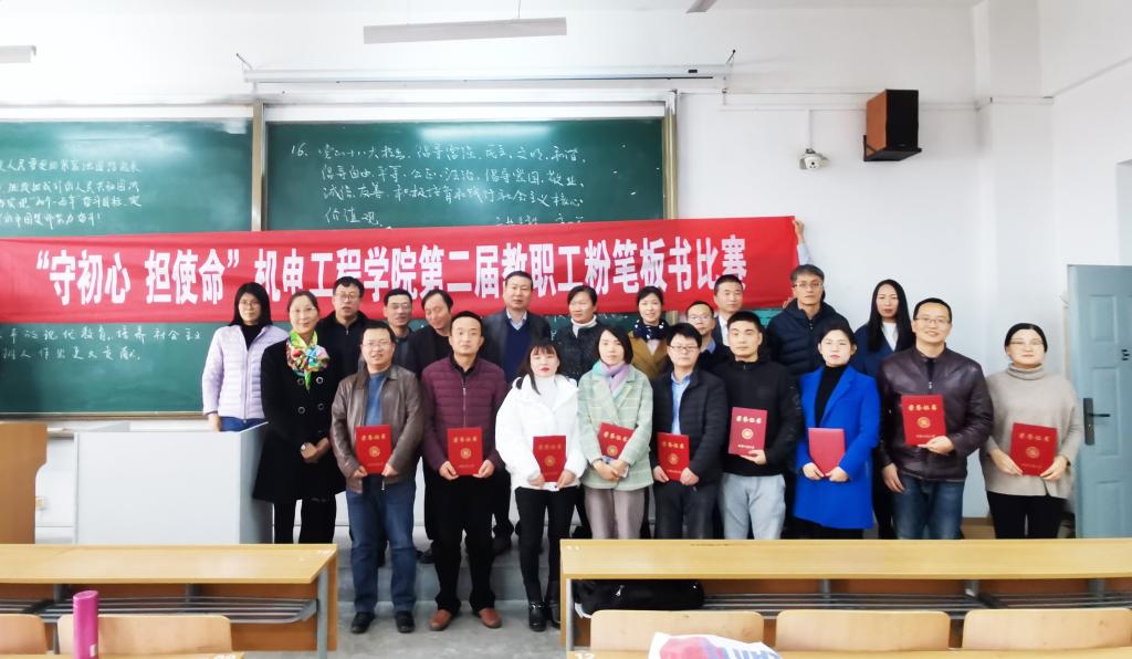 教书育人守初心,立德树人担使命。2019年11月20日中午,Beat365中国唯一官方网站在临潼校区教学楼A-230举办“守初心、担使命”第二届教职工粉笔板书比赛,经各党支部和教研室初赛选拔进入决赛的18名选手参加了比赛。
