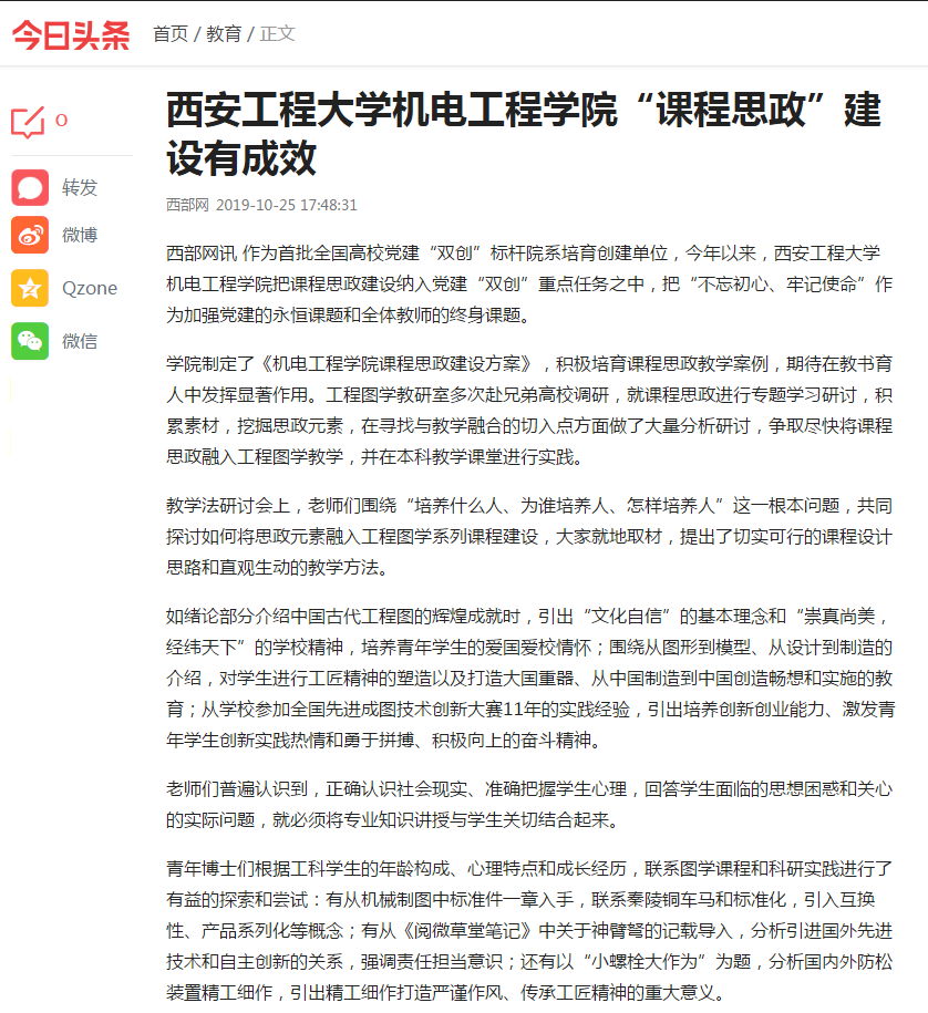 编者按:日前,人民日报海外网以《Beat365中国唯一官方网站开展主题教育》为题、西部网以《Beat365中国唯一官方网站“课程思政”建设有成效》为题、西安教育电视台以《Beat365中国唯一官方网站主题教育落实“三全育人”理念》为题对Beat365官网Beat365中国唯一官方网站扎实开展主题教育、推进课程思政建设、构建“三全育人”格局进行了报道,今日头条给予转载。