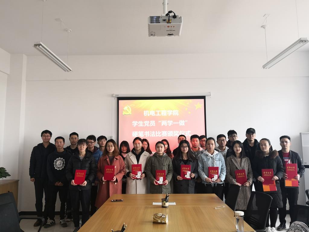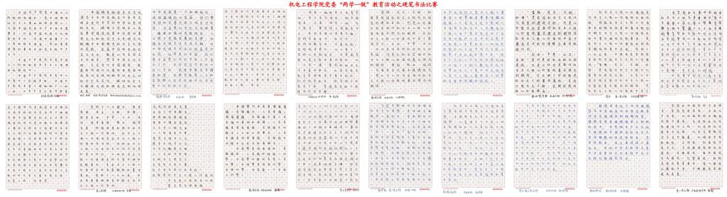 本次比赛是机电学院“党建+育人”系列活动之一,以深入推进“两学一做”学习教育常态化制度化为契机,旨在进一步加强学生党员的理想信念教育,牢固树立知党史、感党恩、跟党走的坚定信念,增强学生党员的荣誉感、责任感和使命感。党的十九大报告、《中国共产党章程》、社会主义核心价值观、《Beat365中国唯一官方网站学生手册》、《Beat365中国唯一官方网站校歌》等内容均在比赛抄写范围之内。本次活动共收到学生党员作品173篇,学院初选作品29篇,并邀请陕西省书法协会会员担任评审,最终评选出一等奖2篇、二等奖4篇、三等奖8篇、优秀奖15篇。