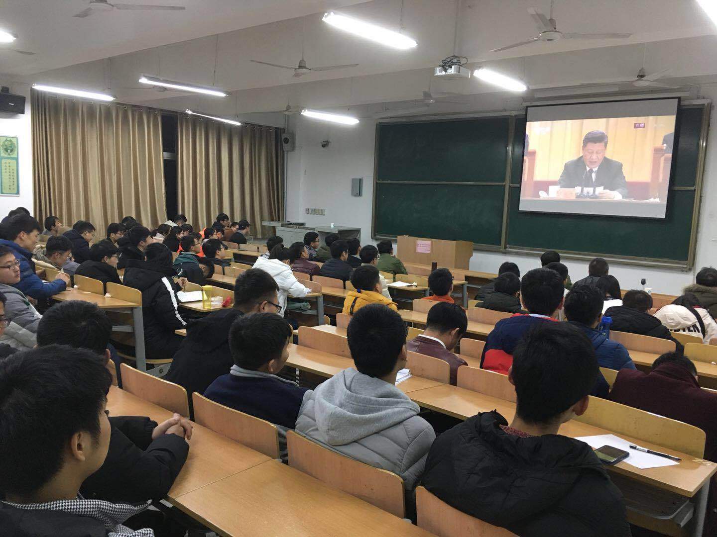 Beat365中国唯一官方网站党委积极响应学校党委号召,组织全院师生员工通过多种途径、多种形式收看大会直播视频。上午10时,没有教学任务的教职工40余人在学院310会议室集中收看大会直播;全体辅导员、研究生、本科生代表50余人在临潼校区大学生活动中心集中收看大会直播。其它教职工、研究生、本科生纷纷通过手机、网络等途径在宿舍、工作室、实验室等地收看大会直播。晚上,全体研究生140余人在临潼校区A-202教室集中收看了大会视频。