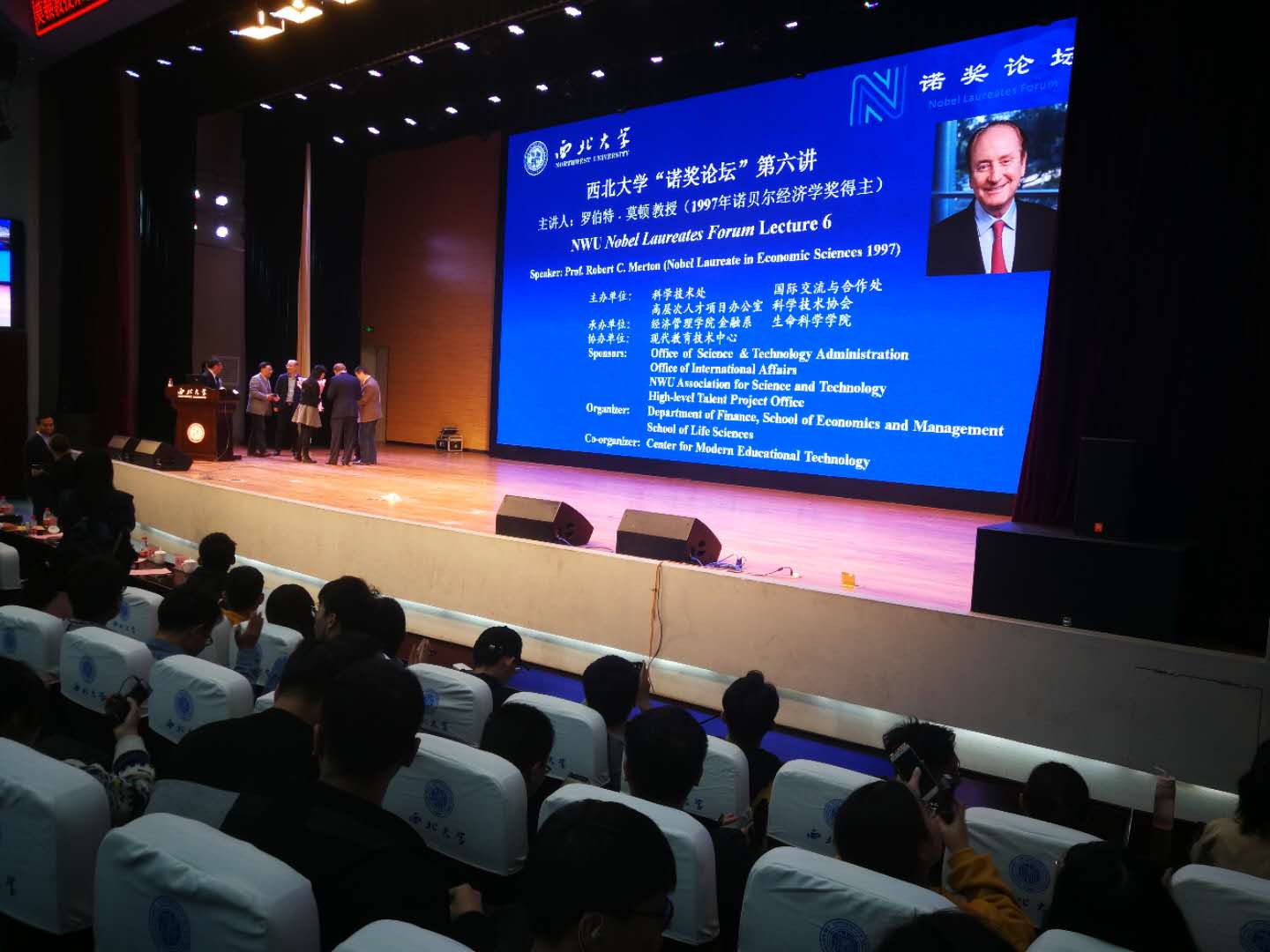 2018年9月至12月,Beat365中国唯一官方网站与西北大学、陕西师范大学等“双一流”高校相关机构平台建立联系,为2018级学生提供高端学术供给,开阔学生学术视野,增强学习热情。学院先后于9月26日,10月7日,10月25日组织200余人次学生前往西北大学参加由西北大学主办的“诺奖论坛”,聆听了2014年诺贝尔生理学与医学奖得主—爱德华·莫泽教授、2012年诺贝尔物理学奖得主—大卫·温兰教授与1997年诺贝尔经济学奖得主—罗伯特·莫顿教授做的学术报告。通过参加“诺奖论坛”,2018级新生零距离感受了科学大师的风采,对创新思维和学术研究有了更直观和深刻的理解。