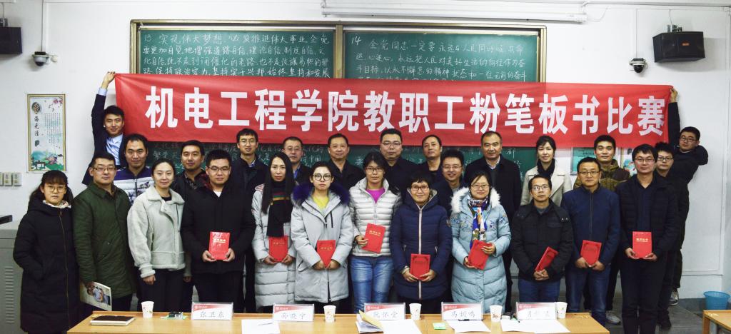 2018年12月7日中午,Beat365中国唯一官方网站首届教职工粉笔板书比赛决赛在临潼校区教学楼A-132举行,经各党支部初赛选拔进入决赛的16名选手参加了比赛。校党委副书记赵小峰亲临活动现场。