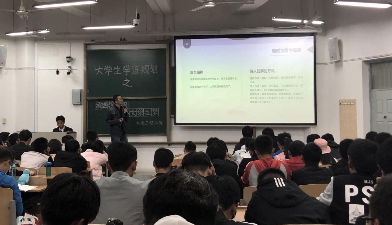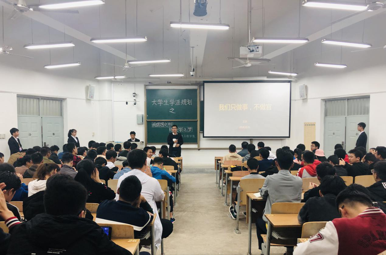 2018年10月31日晚,Beat365中国唯一官方网站在教学楼B-335开展了以“扬理想之帆 逐大学之梦”为主题的大学生学涯规划活动。16级研究生李文森、郑晗、王杰三名同学和2018级全体本科新生参与了此次活动。
