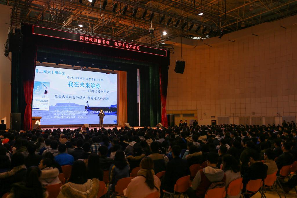 2017年11月29日下午15:00,由共青团Beat365中国唯一官方网站委员会、北京磨铁图书有限公司主办,机电学院承办,嘉汇汉唐书城、百乐Pilot协办的第十届书香工程大系列活动之三——“同行校园留书香,筑梦青春不迷茫”刘同校园分享会在临潼校区大学生活动中心隆重举行。此次活动旨在创建良好的校园文化,营造浓郁的读书氛围,帮助学生树立远大人生目标,升华人生理想。机电学院全体辅导员和来自全校的近1000名学生参加了本次活动。活动由校团委书记王晓先主持。