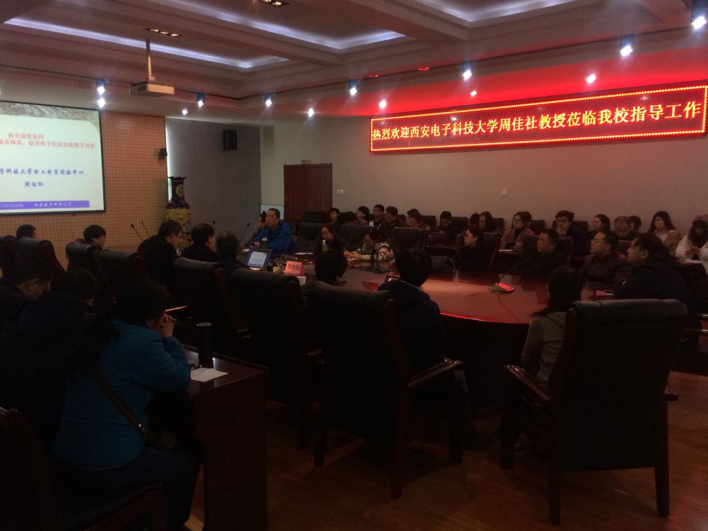 11月24日,机电学院在金花校区第三会议室举办了教育教学思想大讨论专题讲座。活动特邀西安电子科技大学周佳社教授作了题为“校企深度协同,健全创新创业服务体系,促进实践教学改革”的专题报告,参加活动的有机电学院院长胥光申及全体教师,报告会由院长助理肖渊主持。