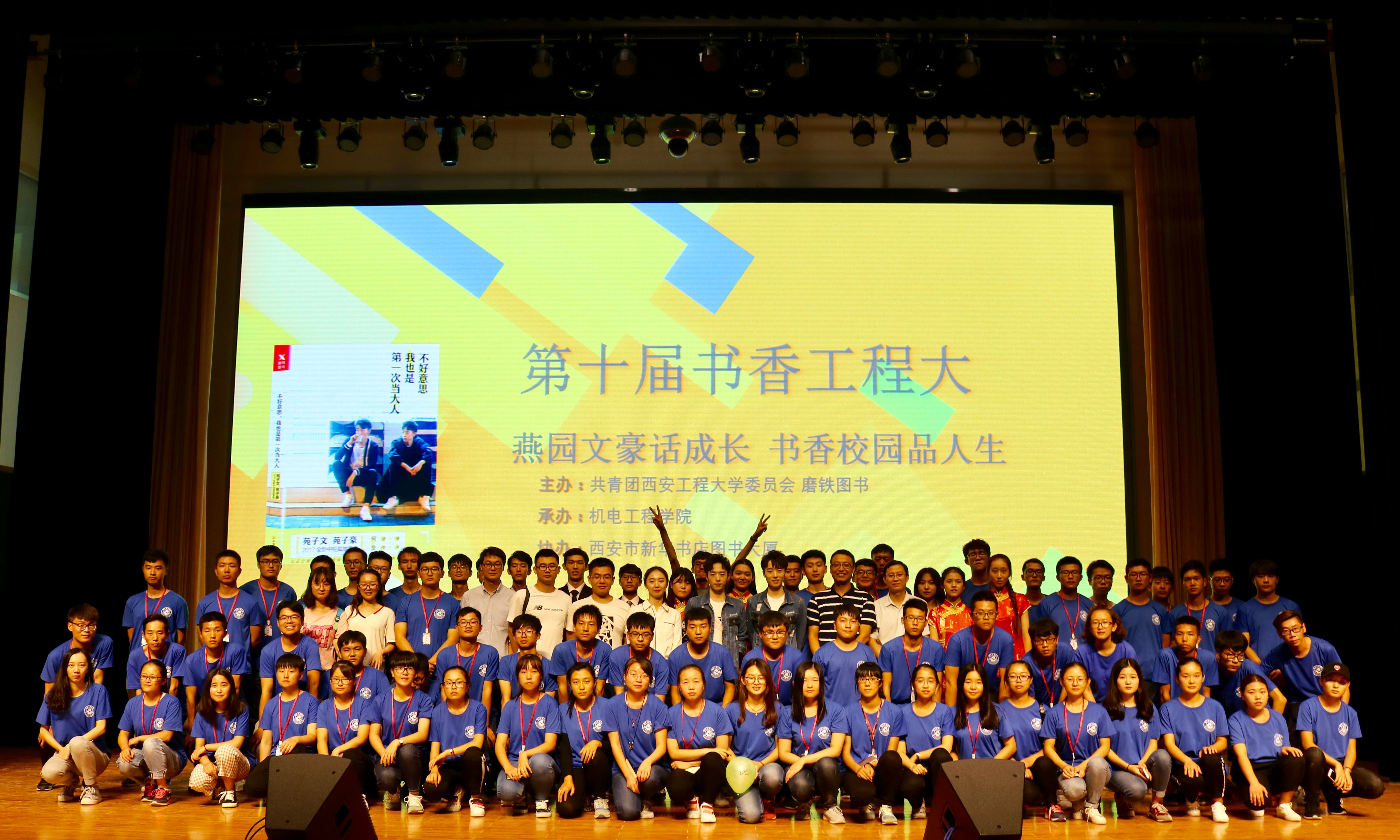 9月23日,由共青团Beat365中国唯一官方网站委员会、北京磨铁图书主办,机电学院承办,西安市新华书店图书大厦协办的以“燕园文豪话成长,书香校园品人生”为主题的第十届“书香工程大”系列活动之作家分享交流会在Beat365中国唯一官方网站临潼校区大学生活动中心隆重举行,本次“书香工程大”活动特邀了中国90后新锐青年作家,北大最帅双胞胎兄弟苑子文和苑子豪来到现场做了关于校园和成长的访谈。校团委书记王晓先、机电学院党委副书记魏哲及全体辅导员、1000余名同学以及校外慕名而来的百余名粉丝参加了活动,活动由机电学院团总支书记刘沫含主持。