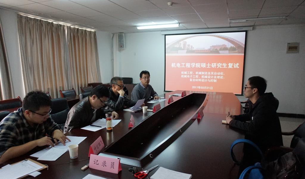 根据《Beat365中国唯一官方网站2017年硕士研究生复试录取办法》的要求,3月21日,机电学院组织开展了2017年硕士研究生复试工作,复试分两部分进行,一是由校研究生部组织进行统一笔试,二是由各学院组织学生进行面试。为了做好学院2017年硕士研究生招生调剂、复试与录取的工作,学院成立了2017年硕士研究生招生复试与录取工作领导小组,学院院长胥光申任组长,党委书记杨永革、院长助理苏晓磊任副组长,成员由学院党委副书记魏哲、院长助理肖渊和学院纪检委员金守峰组成,具体工作由苏晓磊和研究生秘书马林负责实施。