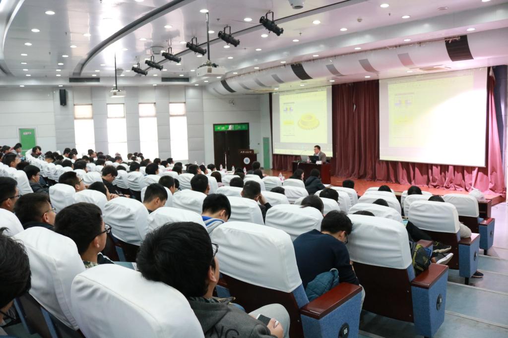 12月7日,由学生工作部(处)主办,机电学院和校工程训练中心联合承办的“百场主题教育报告会及讲座”之第一百三十二场报告暨“CAD\CAM技术在工业生产中的应用”主题报告会在临潼校区举行。本次报告会特邀通力凯顿(北京)系统集成有限公司CAD/CAM技术工程师王鹏主讲,校工程训练中心陈博、机电学院团总支书记刘沫含、2016级辅导员李良和全校学生200余人参加了报告会,报告会由刘沫含主持。