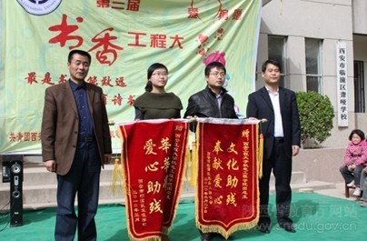 得知临潼区聋哑学校的儿童缺少课外读物,“书香工程大”系列活动的组织者积极联系临潼区残疾人联合会及临潼区各中小学,累计捐赠图书3600余册,在聋哑学校建立了第一个爱心图书站。与青海格桑花教育救助会积极合作,开展了以“储蓄希望,收获阳光”为主题的公益助学活动。依托临潼区残疾人联合会,联合西安建筑科技大学、西安科技大学等单位,为青海贫困山区的儿童捐献书籍衣物等学习生活用品。据不完全统计,五年来,共捐赠书籍20000余册,衣物9000余件。2010年,该校魏哲同志被西安市残联授予“助残工作先进个人”。