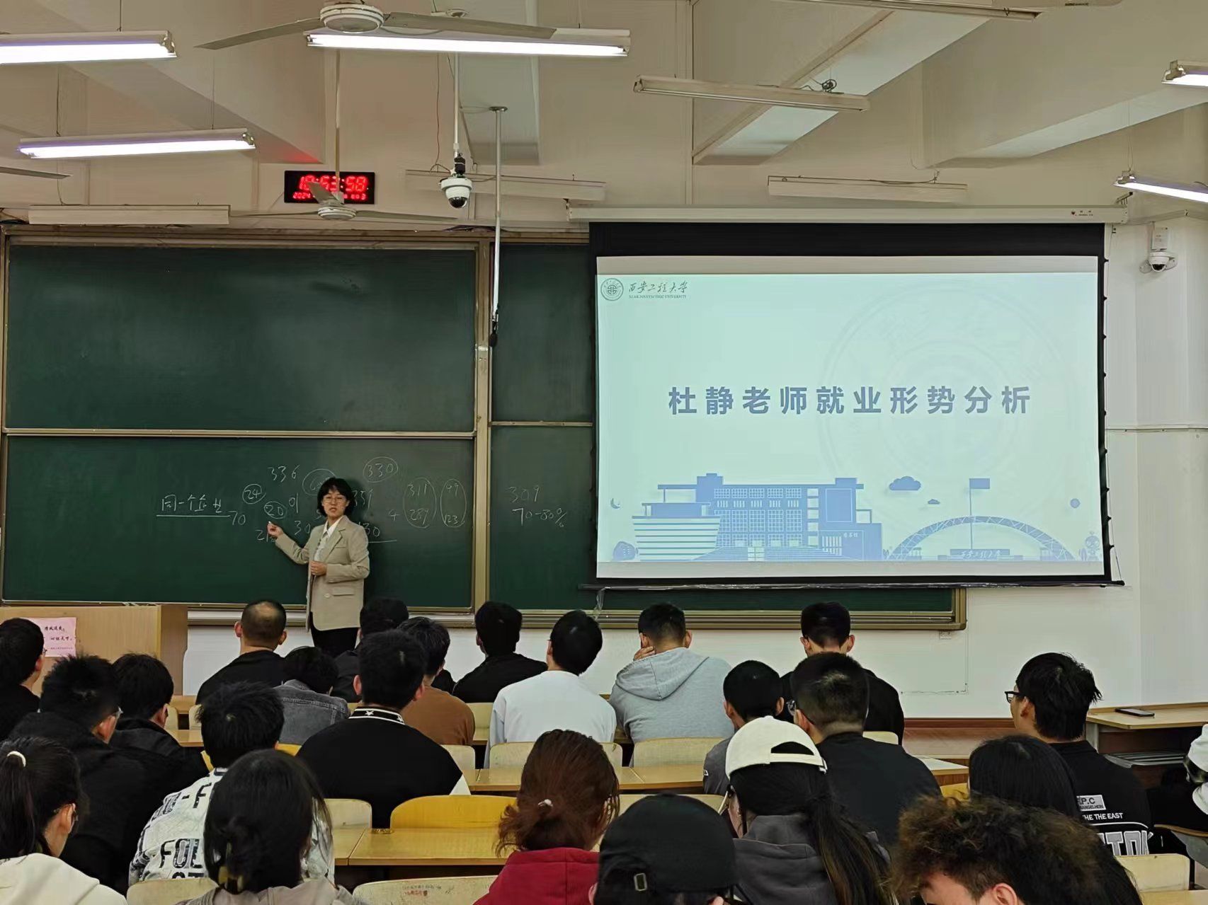 随后,杜静向同学们分享了2023届各专业就业情况以及部分2023届毕业生求职的案例,供各位同学学习参考;接着结合2023年秋季招聘到2024年春季招聘企业数量的变化情况,详细介绍了当前经济形势和就业形势,引导学生要积极把握住四月份的黄金招聘期,找到合适的岗位,同时将“西部计划”向学生进行介绍,引导学生服务基层;最后,杜静提出学院将持续紧盯问题、找准需求,为同学们提供更加个性化、精准化、便捷化的就业指导服务。