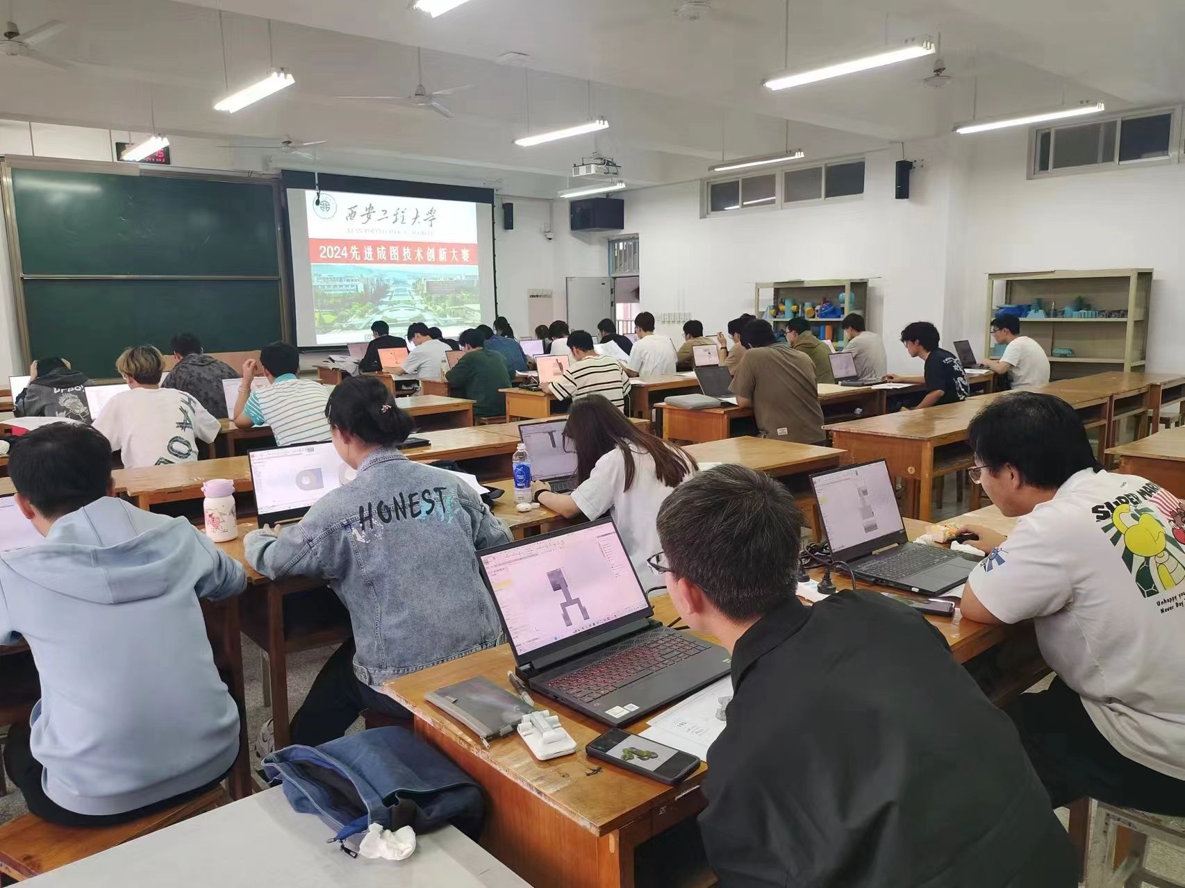 本次大赛共吸引了来自全省50多所高校的840多名学生参赛。西北工业大学、西安交通大学、西安电子科技大学、西北农林科技大学、长安大学等国内众多院校参加了本届比赛。Beat365官网到目前为止已参加了6届陕西省工程制图及3D建模创新大赛,曾经先后获得过4届团体一等奖。本次竞赛共有5名同学获得单项一等奖、10名同学获得单项二等奖,16名同学获得单项三等奖,另外开放赛道中增材设计赛道获得二等奖,轻量化赛道获得三等奖。为迎战本届竞赛,从2023年9月,Beat365官网图学竞赛的培训、选拔就已开始,工程图学教师和学生们一道鏖战300多个日日夜夜,终于不负众望,再次荣获机械类团体一等奖,总分位列全省参赛高校第二,个人单项奖中,Beat365官网韩豆豆、张欣、袁明清3名同学跻身机械类全省前十名。