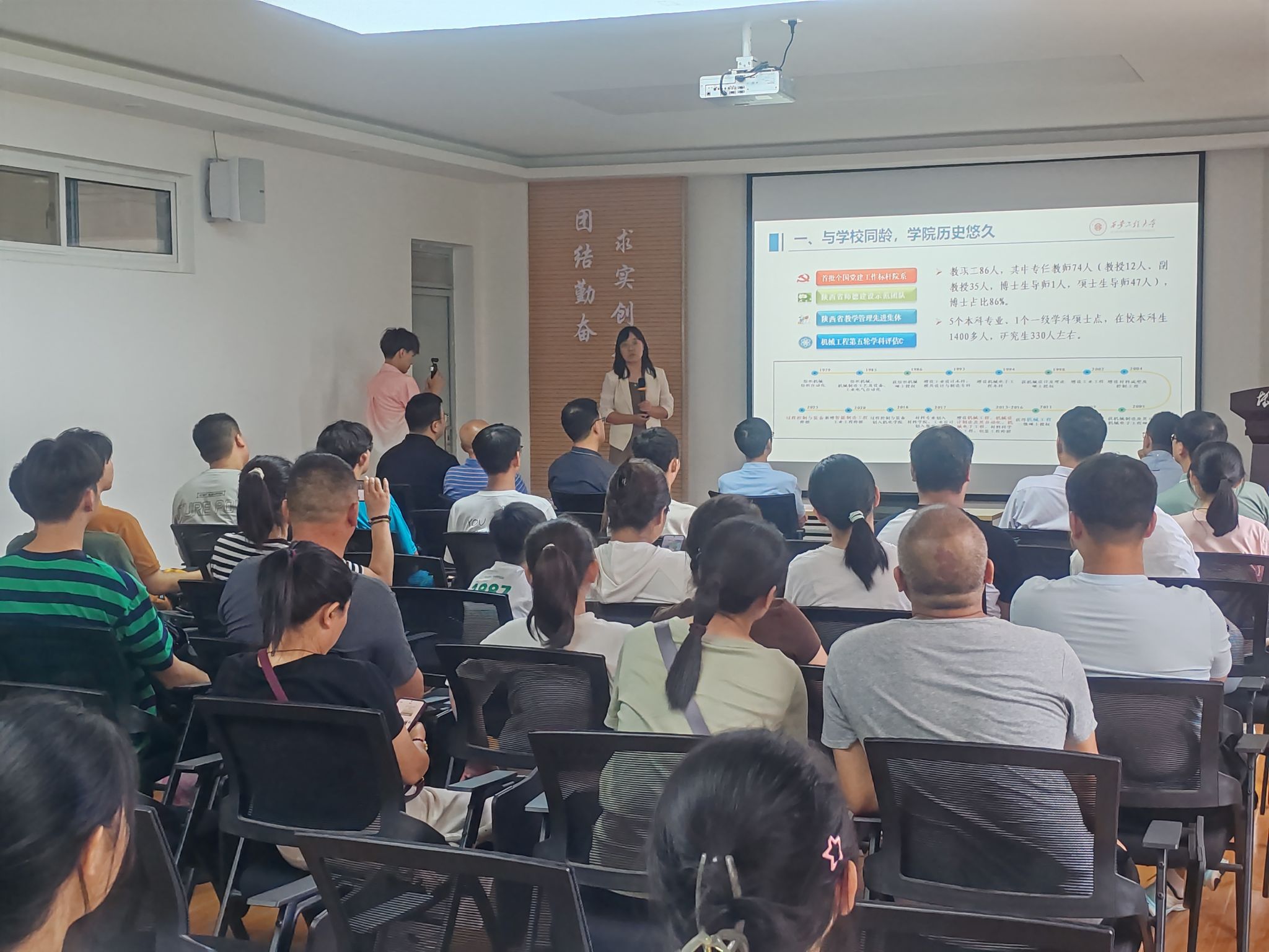 第一环节,阚佩代表学院党委对2024级新生和家长的到来表示热烈欢迎,并以一名老机电人的身份表达了希望,希望家长和学校加强联系,帮助新生尽快转变角色、做好大学规划、树立鸿鹄之志,希望所有学生做到不负时代、不负韶华。赵小惠系统介绍了学院历史、专业发展、师资队伍、人才培养、学科竞赛、校园文化和杰出校友,以及学院优势特色和服务行业地方情况,希望新生始终保持刻苦学习的态度并规划好大学生活,希望家长持续做好对学生学习生活心理各方面的关注。杨鹏程从一名青年教师的角度进行了经验分享,希望新生们始终不能放松学习,要注重提升核心竞争力,做到综合发展,快速成长;希望家长及时鼓励并帮助学生尽快适应大学生活,要建立自主意识并主动学习,进而从容应对压力和挑战。