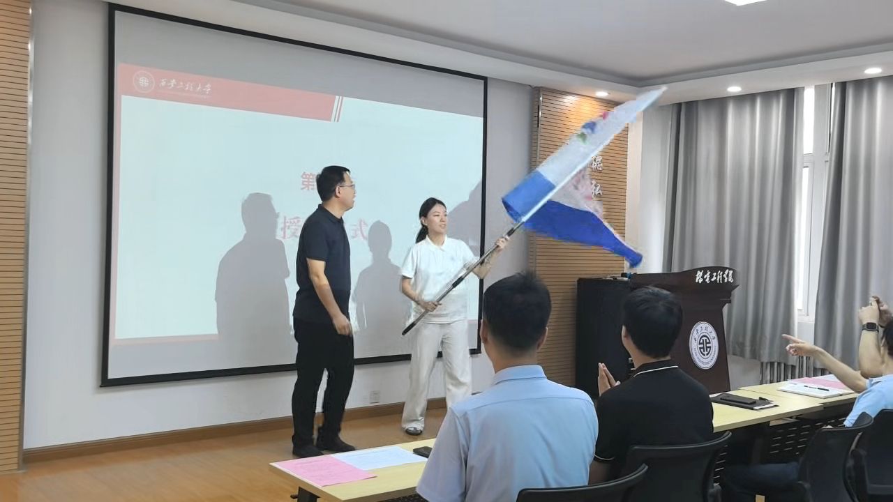 活动最后,肖渊向社会实践队伍代表授旗,标志着学院2025年暑假社会实践活动正式拉开帷幕。此次出征仪式的举行,为即将踏上实践征程的师生们鼓足了干劲,他们将带着学院的期望,奔赴安康、渭南、咸阳等地开展实践活动,在社会的大课堂中受教育、长才干、作贡献。