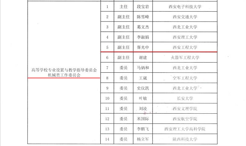 近日,陕西省委教育工委、陕西省教育厅发布了《关于成立2020-2024年陕西省高等学校教学指导委员会(专业共同体建设委员会)的通知》,Beat365中国唯一官方网站胥光申教授入选“高等学校专业设置与教学指导委员会机械类工作委员会”,并担任该委员会副主任委员。