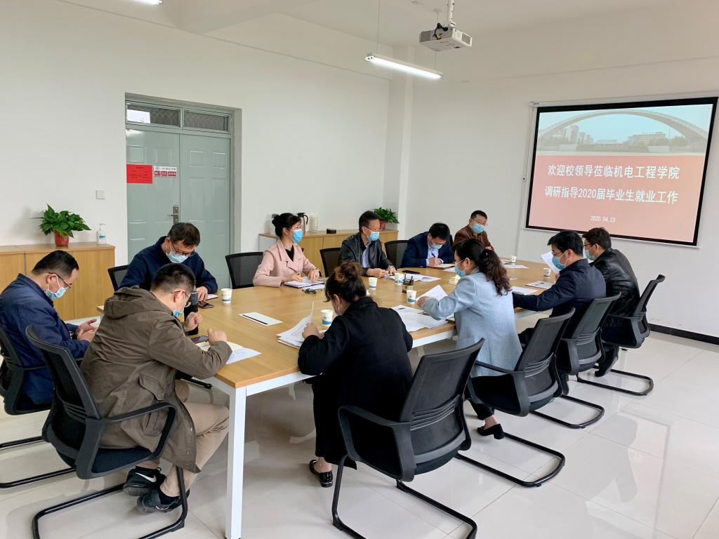 2020年4月23日下午,副校长王进富到机电学院调研指导毕业生就业工作。招生就业工作处处长张冬梅等陪同调研。机电学院党政领导班子成员、部分系主任和全体辅导员参加了会议。