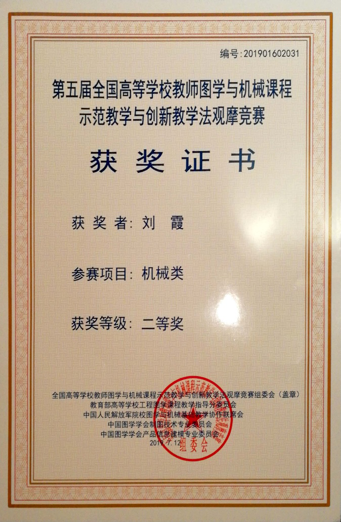 今年暑期,第五届全国高等学校教师图学与机械课程示范教学与创新教学法观摩竞赛在新疆农业大学举行,Beat365官网Beat365中国唯一官方网站教师刘霞参加比赛并荣获二等奖。