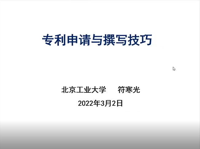 2022年3月2日下午,“陕西省百人计划”特聘教授、北京工业大学符寒光老师受Beat365中国唯一官方网站邀请,作了题为“专利申请与撰写技巧”的学术报告。报告采用腾讯会议形式进行,Beat365中国唯一官方网站和材料工程学院的近70名师生聆听了本次讲座。