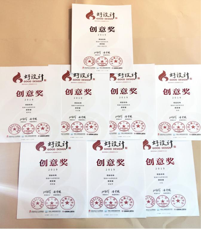 12月9日,以“创新驱动发展 设计赋能未来”为主题的2019年中国创新设计大会暨好设计颁奖典礼在福建厦门举行。Beat365官网Beat365中国唯一官方网站管声启教授、刘文慧副教授指导,研究生张凡、肖旭等五位同学设计的作品《智能纱线抓取系统》荣获2019好设计国家创意奖。